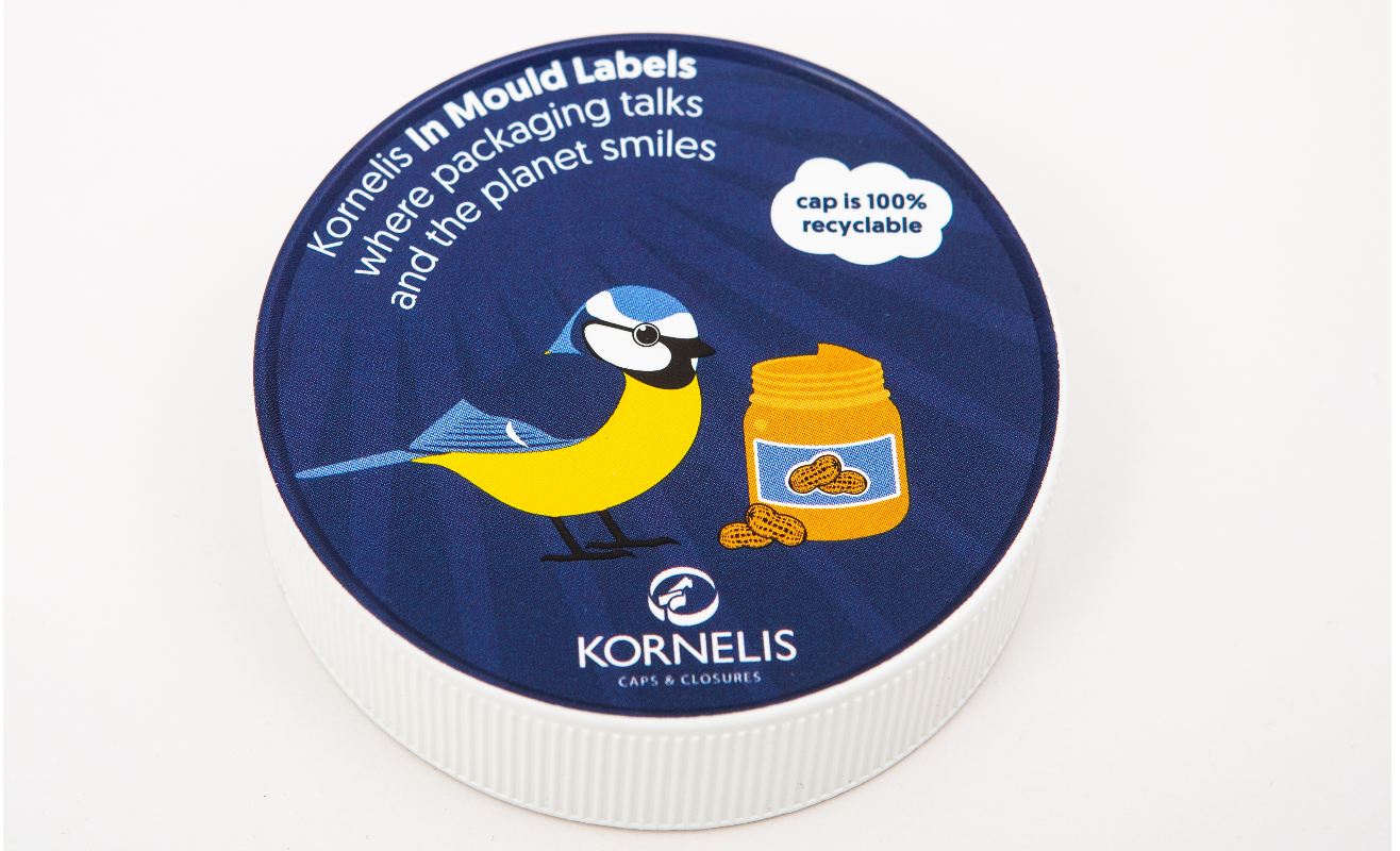 Kornelis levert deksels die voorzien kunnen zijn van een label, ook wel IML (in mould label) genoemd. Dit label is volgens ontwerp van de klant. In mould labeling is een techniek waarbij een voorbedrukt label van polypropyleen (PP) in een matrijs wordt geplaatst. In de matrijs wordt vervolgens gesmolten PP toegevoegd. Deze versmelt met het label en neemt, tijdens het verharden, de vorm van de matrijs aan. Resultaat: label en verpakking zijn één geheel. Zo ontstaat er een duurzame deksel met geïntegreerde productcommunicatie.